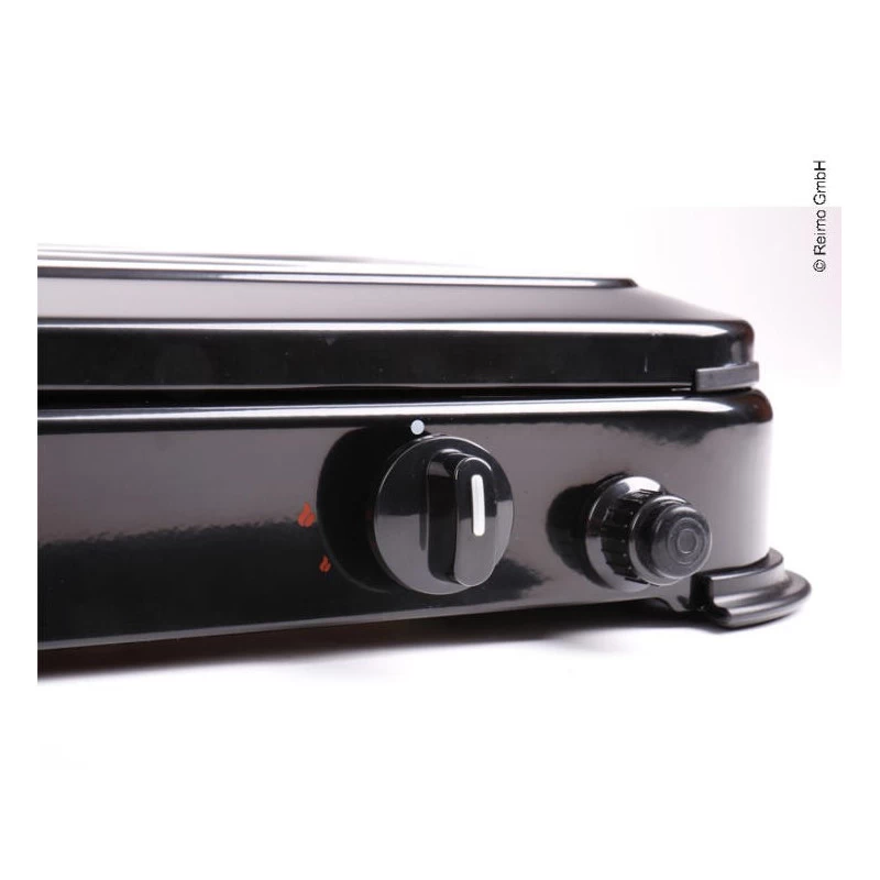 De coloris noir, il est Ă la fois très Ă©lĂ©gant et peu salissant. La sĂ©curitĂ© thermocouple est un système d’arrĂŞt du gaz automatique si aucun flamme n’est prĂ©sente : pas de danger et pas de gaspillage. Conçu surtout pour le plein air en camping-car ou le camping, le couvercle de rĂ©chaud fait office de paravent. En option, la marque propose des pare-flammes latĂ©raux (voir ici).