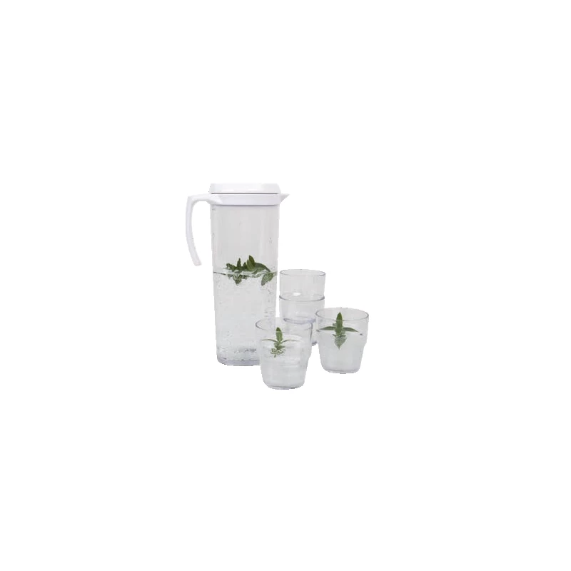 Cet ustensile comprend 1 pichet ainsi que 4 verres en SAN, un plastique léger et résistant. Les 4 verres s’empilent à l’intérieur du pichet pour prendre le moins de place possible à bord de votre véhicule.