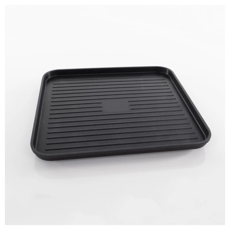 Plaque à plancha carrée. Mesurant 25 cm de coté, elle s’adapte parfaitement sur le réchaud à gaz CAMP4 Cook’n Fold ! Elle existe en 2 modèles de revêtement : lisse ou nervuré. Dans les 2 cas, la plaque à plancha est pourvue d’un revêtement anti-adhésif, permettant de cuisiner tout en limitant l’apport de matière grasse. Facile d’entretien, le nettoyage est rapide, et convient pour la préparation de tout aliment, de l’entrée jusqu’au dessert !
