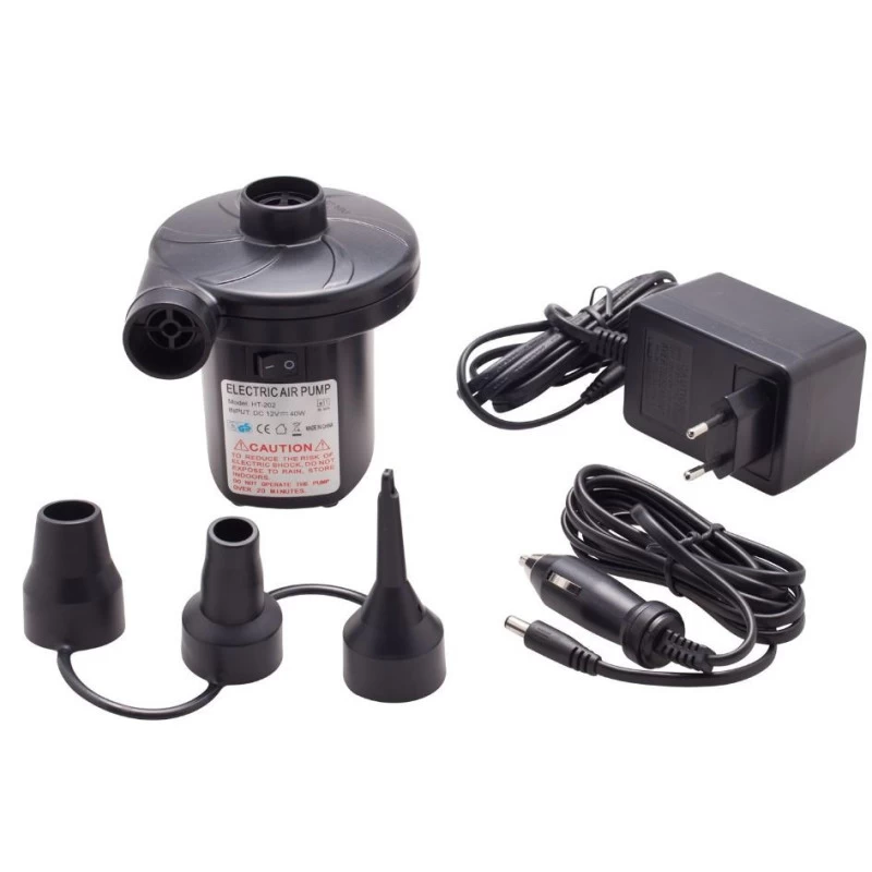 Vraiment pratique, ce matériel de camping s’alimente sur secteur via 230 V (prise Française classique) ou 12 V via une prise allume-cigare très pratique pour une utilisation en fourgon aménagé, camping-car, bateau ou sur le terrain de camping. Livré avec ses trois embouts de gonflage, il s’adapte à la majorité des valve de matelas du marché.