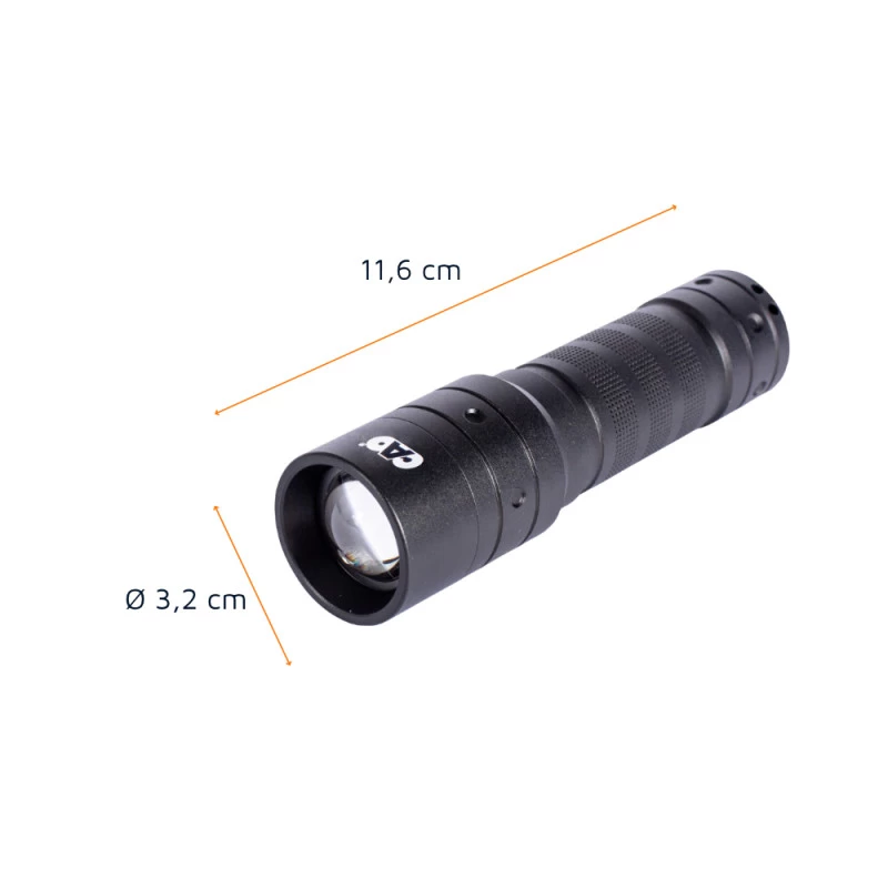 Matériel de randonnée très pratique, la lampe torche LUEUR de CAO OUTDOOR est robuste et très compacte. En effet, elle est fabriquée en aluminium et présente des dimensions contenues de moins de 12 cm de hauteur pour un diamètre de 3,6 cm.