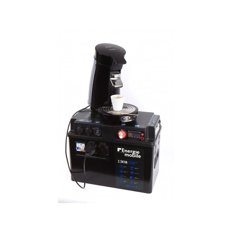 Batterie lithium LiFePO4 portable grande capacité avec gros convertisseur 2500 VA pour utilisation autonome, découvrez la solution batterie nomade Powerbox ENERGIE MOBILE, la plus interconnectable des batteries lithium transportable pour site isolé, atelier, bateau et camping-car.
