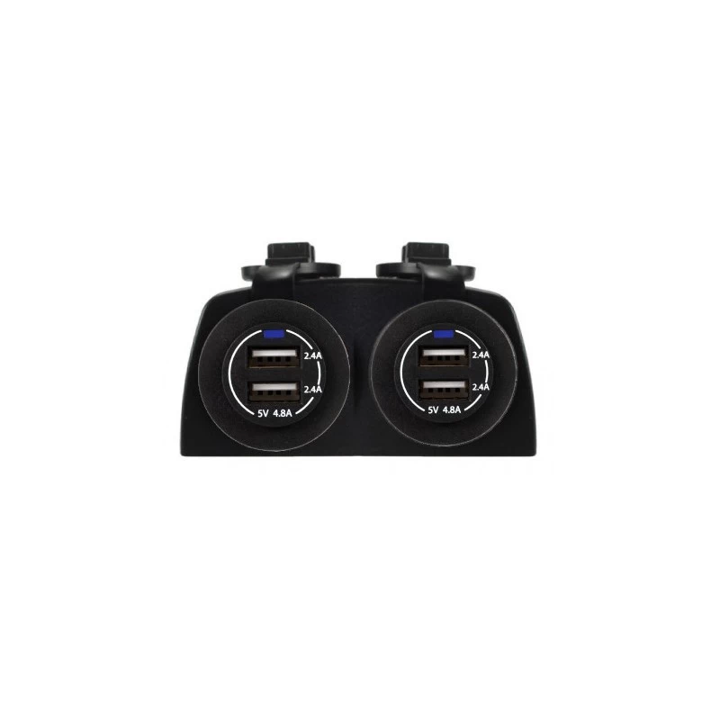 Avec le 2 x double USB 12V en saillie vous pouvez recharger jusqu’à 4 appareils USB simultanément en bateau, camping-car et site isolé.