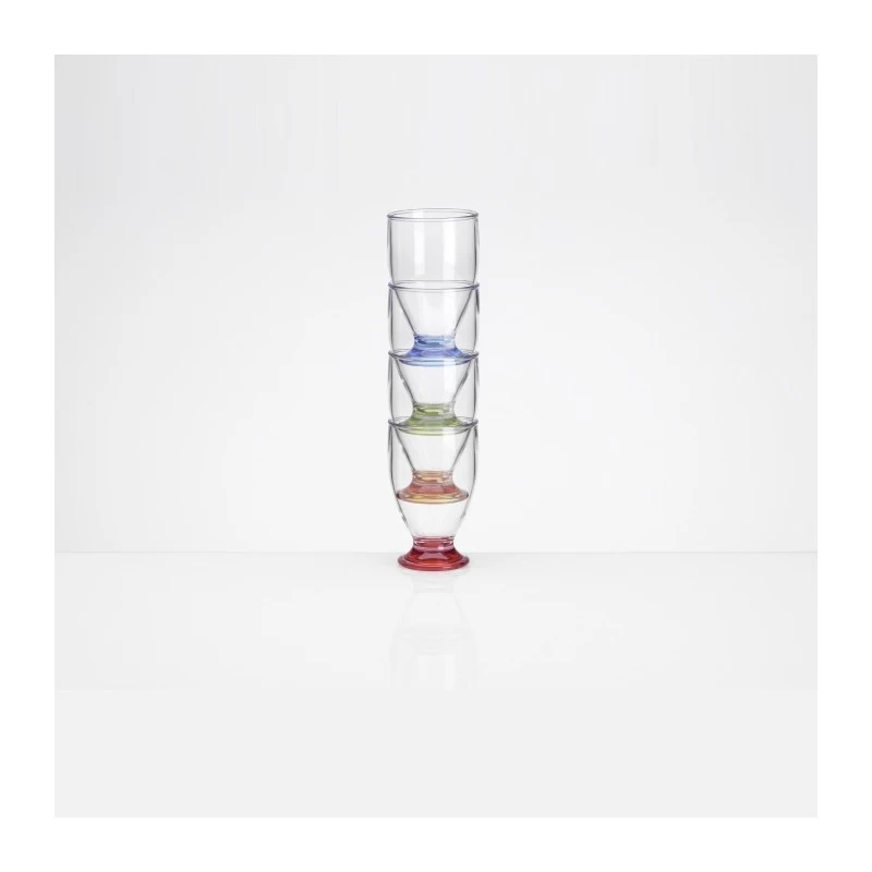 Grâce à sa fabrication en acrylique, ces verres n’occasionneront aucun bruit de vaisselle lorsque vous partez en vadrouille à bord de votre bateau ou de votre caravane. Vendus par lot de 4, chaque pied possède une couleur différente.