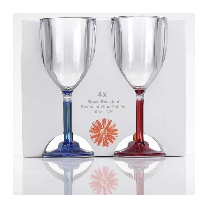 Verres à vin à pied entièrement en acrylique pour apprécier un apéritif entre amis même en vacances en camping, en bateau ou en camping-car.