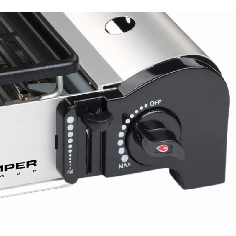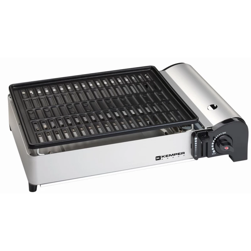 Accessoire de qualité KEMPER, ce réchaud/barbecue gaz offre toutes les fonctionnalités indispensables : réglage de la puissance manuel, bac à collecteur de graisse, grille anti-adhésive et même allumage piézo électrique ! Bref l’essentiel pour l’indispensable !