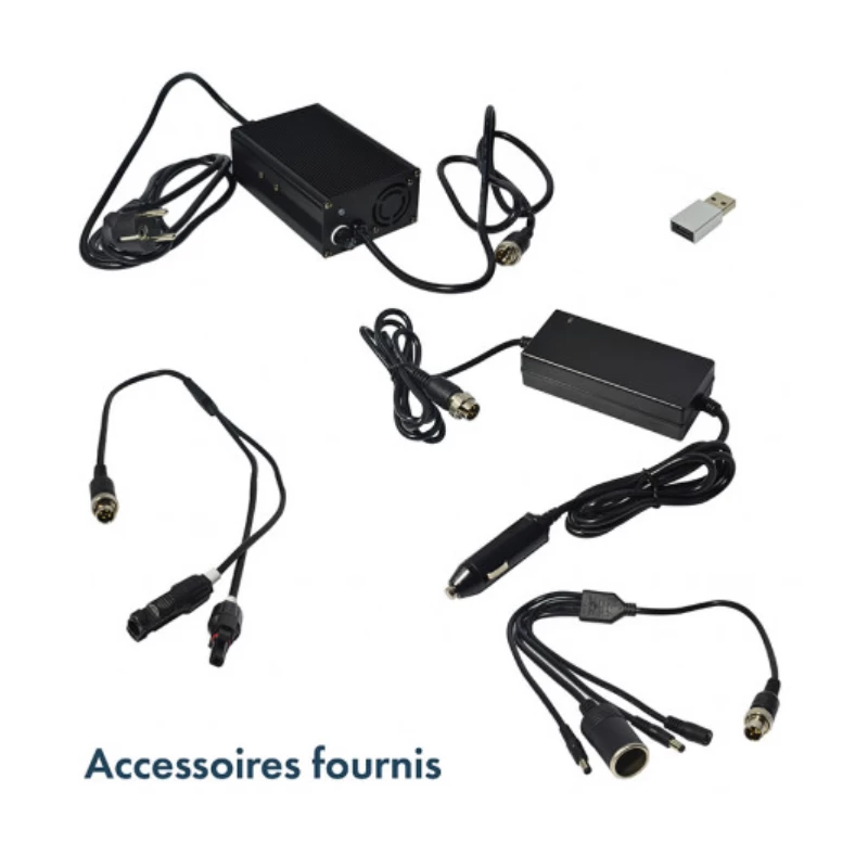 - Chargeur 230 V inclus (4 a 5 h de charge environ)