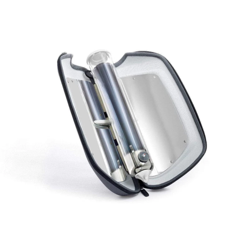 Comment çà marche ? Le GoSun Go de SOLAR BROTHER se compose de 2 réflecteurs qui vont capter les rayons du soleil et les concentrer dans le tube sous vide. Il va ensuite rapidement monter en température. Sa forme parabolique est optimale pour capter au mieux les rayons du soleil sans réajustement.