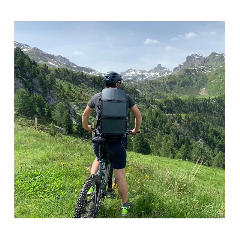 - Inclus : mousquetons, élastiques de fixation & panneau solaire